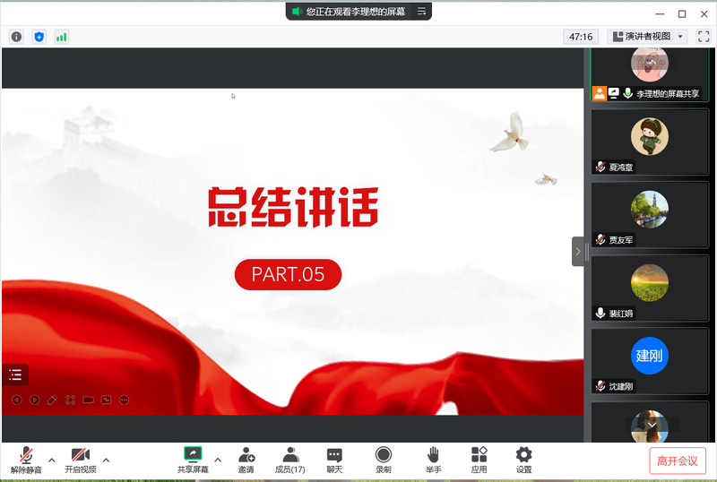 观看完视频,支部成员代表立足自身实际谈感悟,其中贾友军老师、李咏宾老师、尚林果老师、艾优热老师、贾悦老师为代表进行了发言。贾友军老师说:“在这个时间节点,我们支部举行这样的活动是十分有意义的,从视频里我们也可以看出新中国成立以后,我们取得的辉煌成就,发生的翻天覆地的变化。我衷心地讴歌党取得的光辉历程和丰功伟绩,祝福祖国繁荣昌盛,作为一名即将退休的老教师,我要立足自身所在学科,坚持学习、终身学习,以饱满的精神迎接党的二十大。”