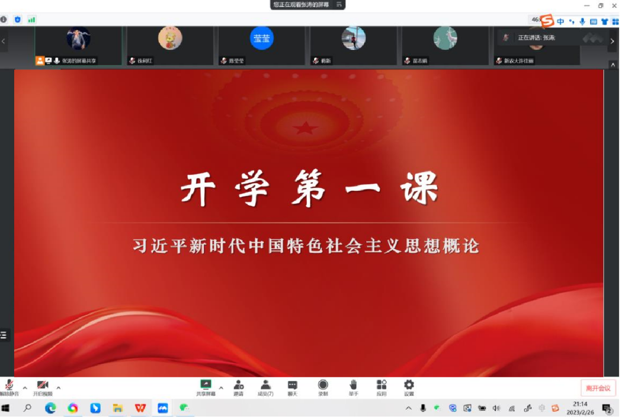 《习近平新时代中国特色社会主义思想概论》教研室主任张涛针对2023年春季开学第一课的具体内容作了细致的讲解,不仅包括课程介绍和学习意义,也涉及课程内容体系和学习安排,最后明确了学生学习本课程的方法与要求,并对每位授课教师提出殷切的期望。校党委副书记张小楠同志莅临备课会,她肯定了这次活动,并提出了宝贵的指导性意见,教研室教师积极发言,准备以满腔的热情开启新学期的工作。