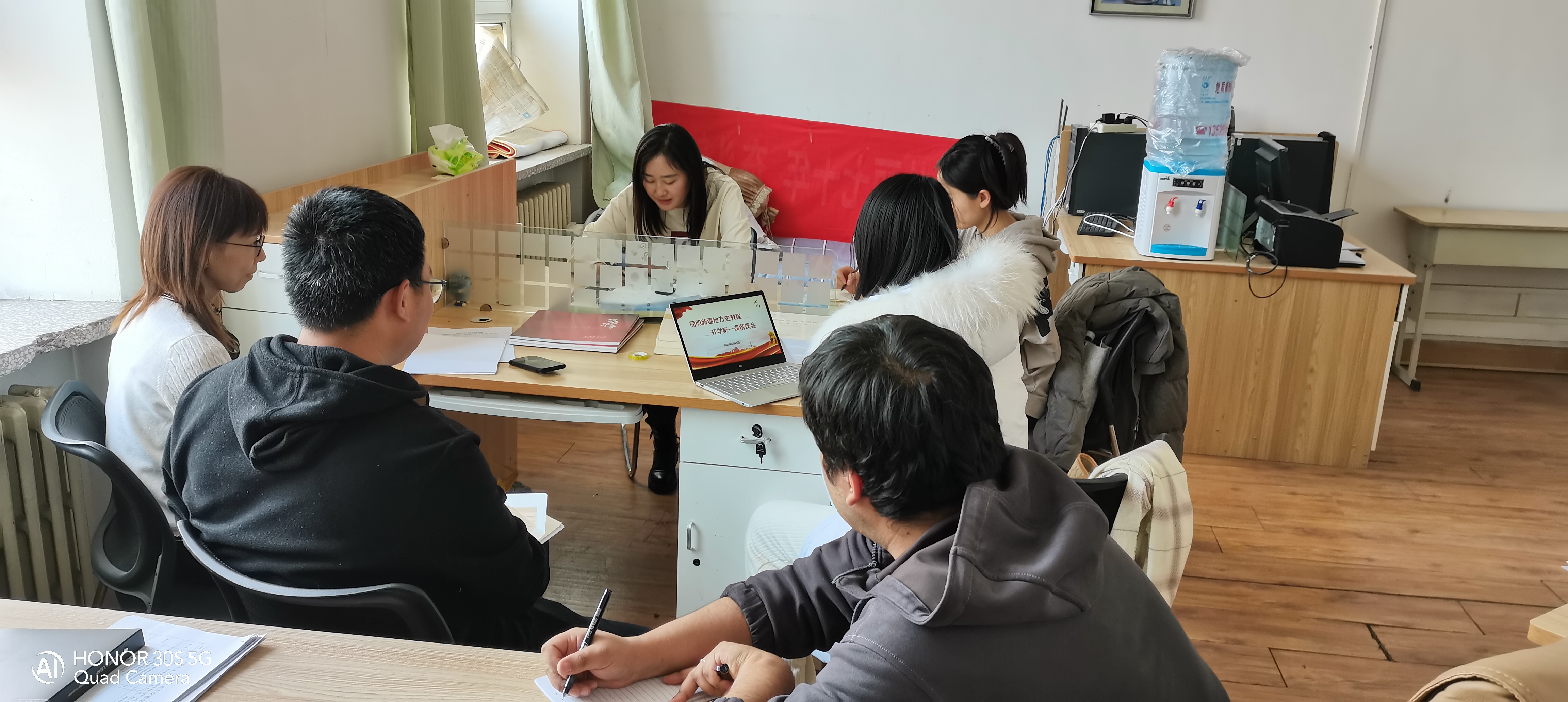《简明新疆地方史教程》教研室主要围绕讲好“开学第一课”,由教研室教师从“后疫情时代:共创后疫情时代美好世界;中央经济工作会议精神;回归校园,开启新学期”三个方面进行阐述。接着,教研室老师就三个部分的展示逐一讨论并提出宝贵建议。备课会还就本学期实践教学方式进行了讨论。
