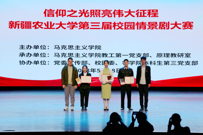 5月28日下午,由马克思主义学院主办,马克思主义学院教第一党支部、马克思主义基本原理教研室承办,校党委宣传部、校团委、农学院本科生第三党支部协办的学习贯彻习近平新时代中国特色社会主义思想主题教育学习实践活动“信仰之光照亮伟大征程”——星空彩票体彩版第三届校园情景剧大赛在学校会堂中心主会场举行。