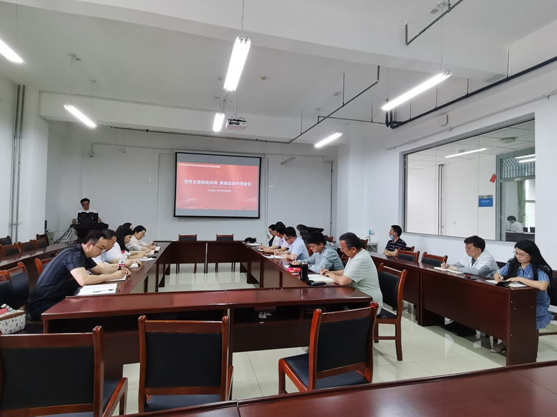 活动首先在动医学院会议室拉开了帷幕,由动物医学学院预防兽医系教工党支部书记张伟同志主持。第一项活动落实第一议题制度,由马克思主义学院教工第三党支部组织委员王嘉辰同志讲授题为“坚持全面依法治国 推进法治中国建设”的专题党课。活动第二项,动医学院院长郭庆勇教授对马院老师们的到来表示欢迎,并对两支部教师的交流提出了几点希望。两位支部书记就两个支部的情况做了简介。活动第三项,全体党员就党课学习、课程思政、党支部建设等展开了充分的交流研讨。动医学院巴音查汗·盖力克老师表示非常高兴能够与马克思主义学院的教师进行交流,也希望未来马院的老师能与动医学院的年轻博士们多交流,一起在课程思政方面多出成果、出好成果。马克思主义学院党政办主任齐立新老师表示两个学院在人数上有很多相似之处,并在学院人才招聘与支部建设方面与动医学院展开了充分的交流。