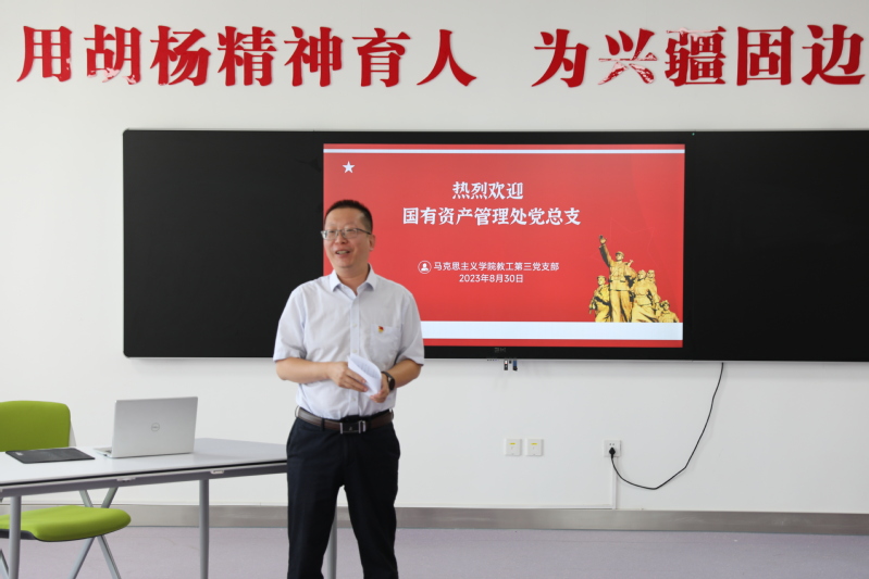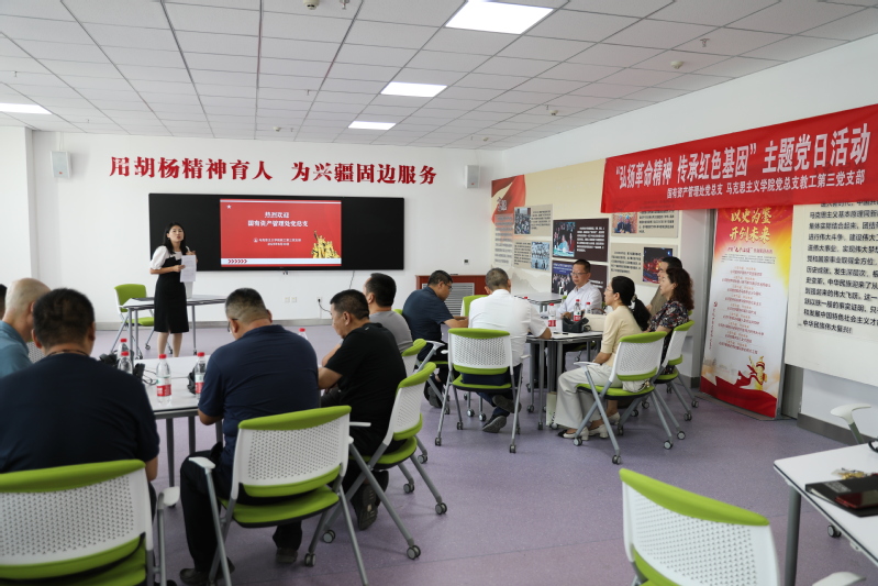 活动伊始马克思主义学院教工第三党支部书记李然向大家介绍支部基本情况,并分享了自治区样板党支部的创新经验。国有资产管理处党总支书记晋瑜就党总支及两个支部的基本情况做了简要介绍