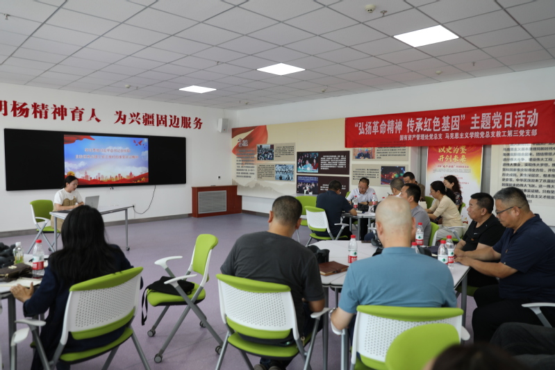 为深入学习贯彻党的二十大精神,坚持不懈用习近平新时代中国特色社会主义思想凝心铸魂,教育引导党员干部牢牢把握主题教育总要求,马克思主义学院教工第三党支部与国有资产管理处党总支联合开展了弘扬革命精神 传承红色基因”主题党日活动。本次联合党日活动在思想政治理论课融媒体中心举行马克思主义学院教工第三党支部书记李然主持,相关党支部全体党员同志参加