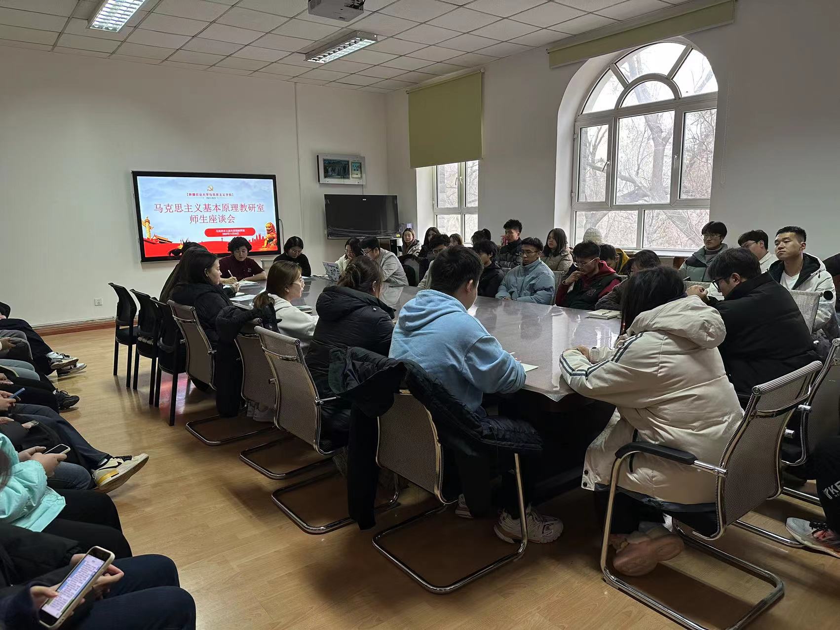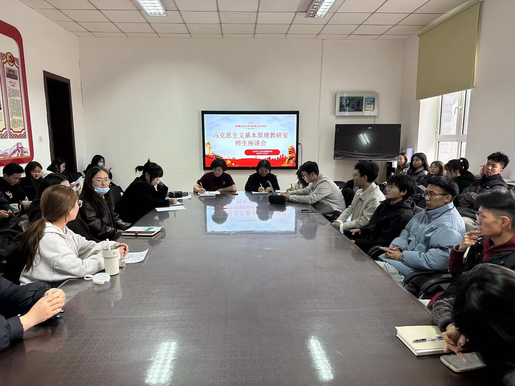 为深入了解学生对“马克思主义基本原理”(简称“原理”)课程的学习感受及本学期课程教学的意见和建议,不断增进师生交流,推动课程教学改革创新,2023年11月22日下午,马克思主义学院“原理”教研室在学院会议室召开了师生座谈会,学院副院长苗志娟、教学秘书杨文婷、课程所有任课教师以及本学期上课班级的班委及学生代表50余人参加。会议由“原理”教研室主任迪丽娜尔·阿不力孜主持。