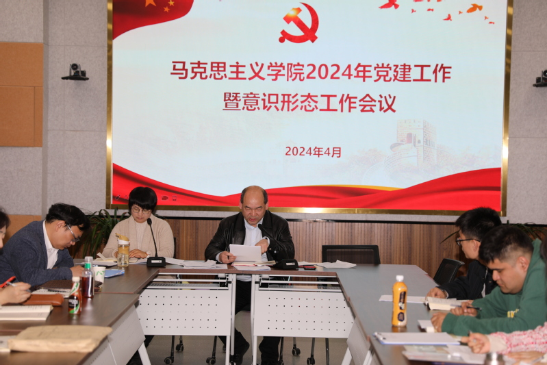 4月17日下午,马克思主义学院召开了2024年党建工作暨意识形态工作会议。学院党总支书记马志强主持会议并作总结讲话,全体教师参加会议。