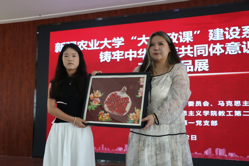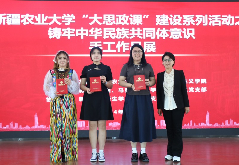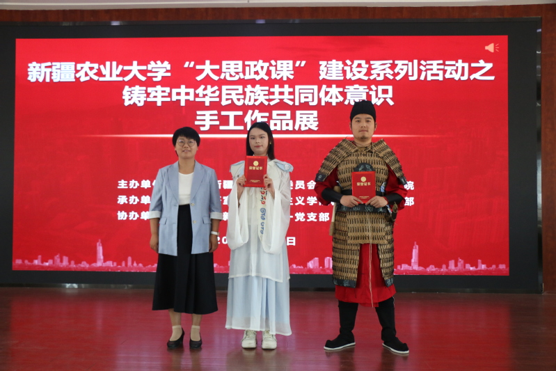 经过激烈角逐,土地资源管理2301班《锦绣和鸣云肩》和公共事业管理2301班《仿唐边军甲胄—镞阖》荣获一等奖;国际经济与贸易(国际)2301班《中华民族一家亲 同心共筑中国梦》、农业资源管理2301班《融合·绽放》和市场营销2301班《石榴花开·籽籽同心—掐丝珐琅画》荣获二等奖;林学2301班《千里江山图》、园林2302班《民族团结剪纸灯笼》、法学2301班《西游皮影》和国际经济与贸易2302班《旭日中国玻璃画 城市画 民族画》荣获三等奖。评委为获奖小组代表颁发了荣誉证书和奖品。
