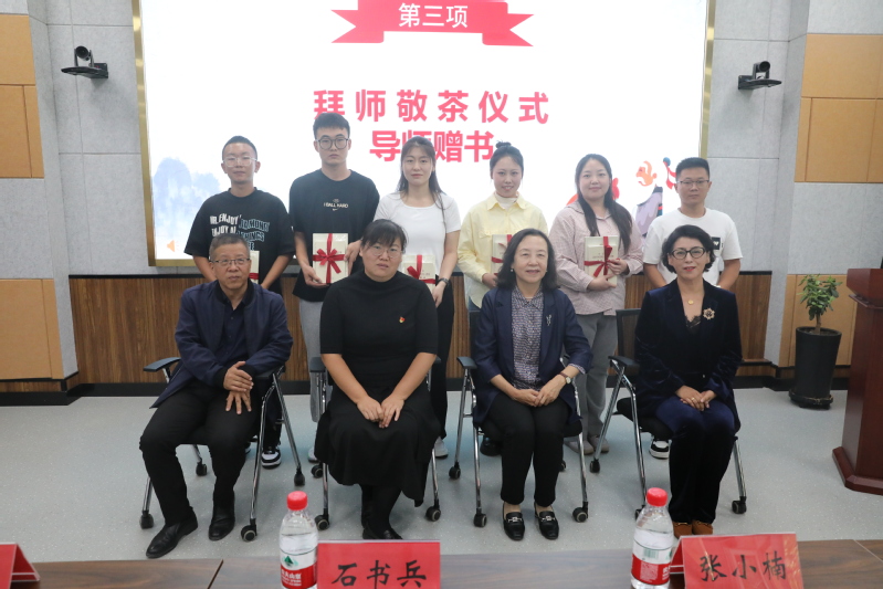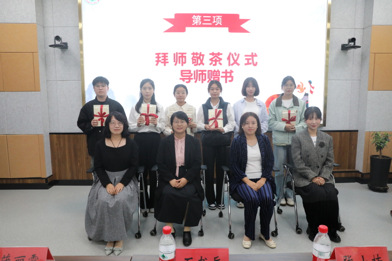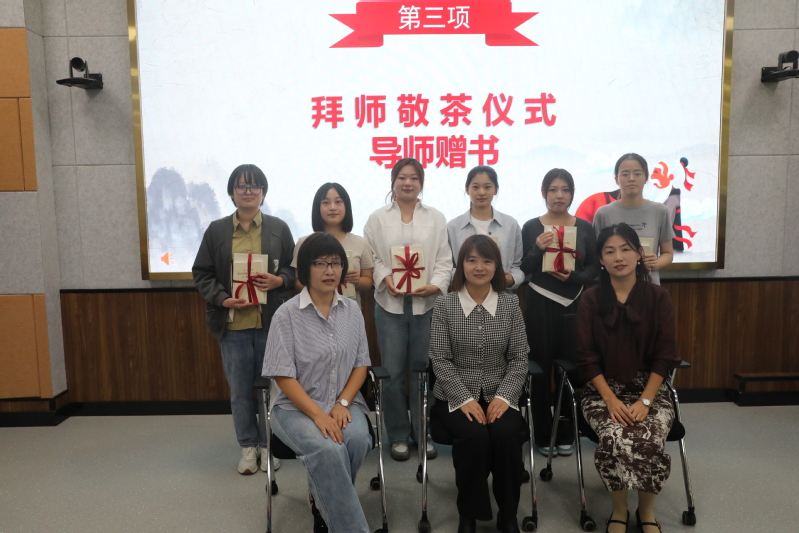 在拜师敬茶环节中,同学们双手捧起一碗清茶,鞠躬敬与自己的导师,不仅表达敬意,更表明了师生之间的传承。敬茶结束后,各位导师纷纷为新生送上书籍,勉励他们坚定理想信念,求得真学问。