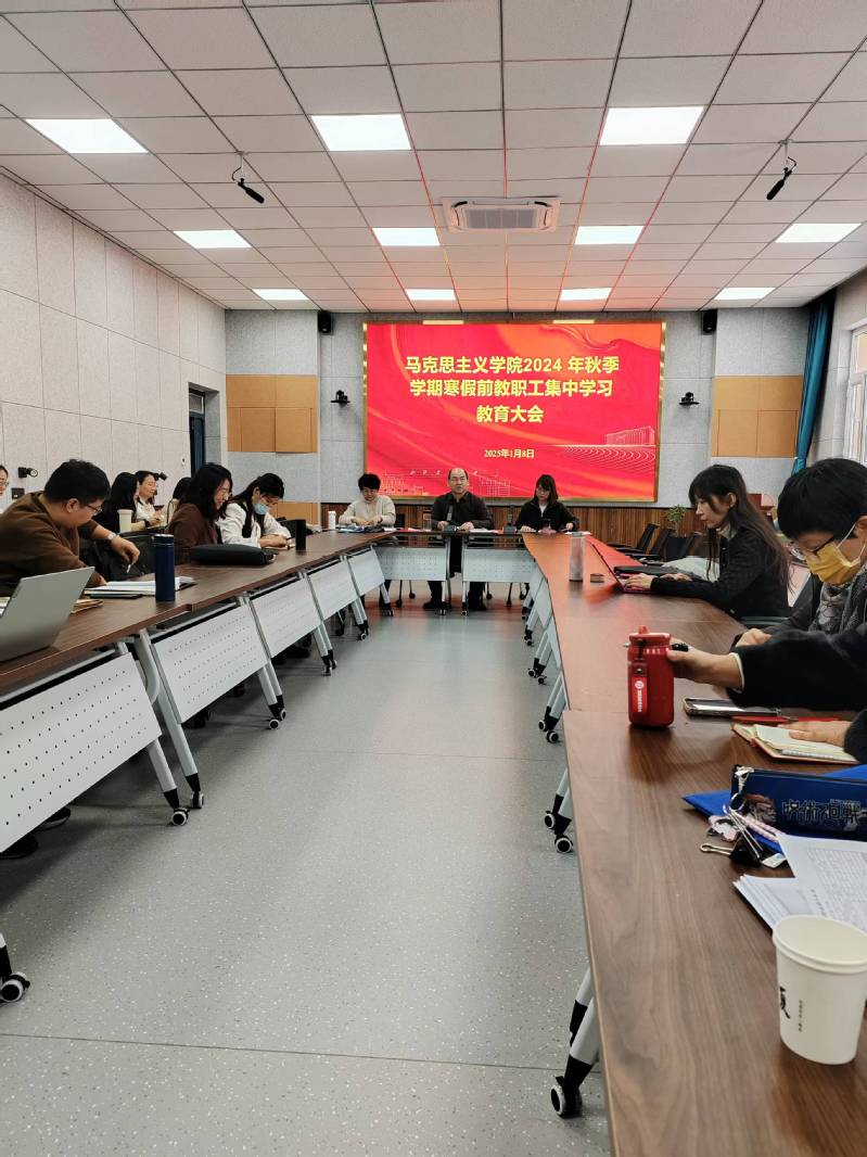 为深入学习贯彻党的二十大、二十届三中全会精神,持续巩固拓展学习习近平新时代中国特色社会主义思想主题教育成果,进一步强化学院教职工理论武装、提升思想政治素质,根据学校工作安排,1月6日至9日,马克思主义学院精心安排,结合实际,开展2024年秋季学期寒假前教职工集中学习教育。集中学习教育通过领导领学、专家讲座、实践研学、观看专题视频等丰富多样的形式展开,进一步调动教职工学习积极性,确保学习扎实有效。