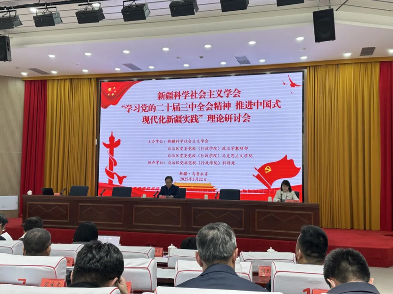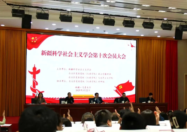 3月22日,新疆科学社会主义学会第十次会员大会暨“学习党的二十届三中全会精神 推进中国式现代化新疆实践”理论研讨会在自治区党委党校召开。来自全疆各地140位会员代表齐聚一堂。马克思主义学院院长蒲丽霞、副院长苗志娟以及裴红娟、沈建刚、热亚提、张莹、马润佳等教师参加了此次会议。