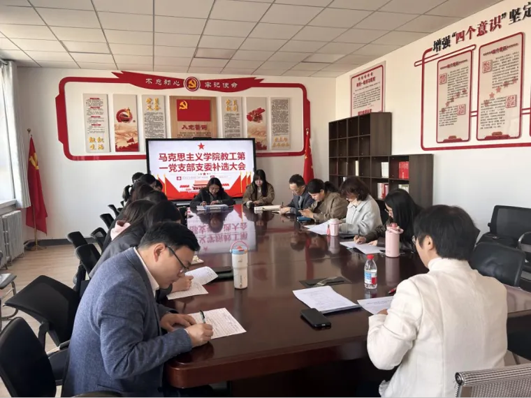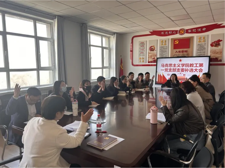 会议还进行了支委补选。会议宣读了上级党组织关于支委补选的批复,并详细介绍了补选的重要意义、候选人基本情况。本次补选严格按照《中国共产党章程》《中国共产党基层组织选举工作条例》等相关规定,秉持公平、公正、公开的原则有序推进。全体参会党员审议并通过了补选办法、监票人和计票人名单。在投票环节,正式党员们认真填写选票,郑重投出自己的一票。经现场投票、计票,丁露露同志当选为马克思主义学院教工第一党支部书记。