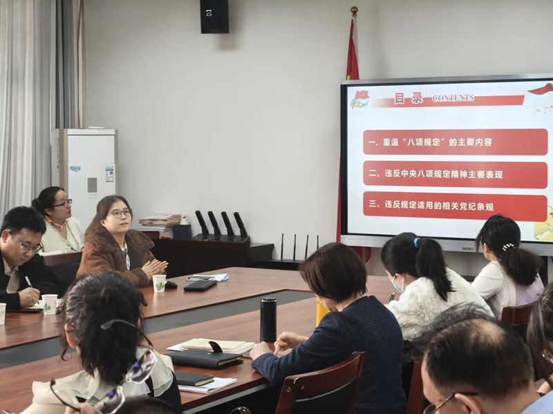 在理论学习环节中,马克思主义学院温程芳作了《深入贯彻中央八项规定精神学习教育》专题党课,从重温中央八项规定的主要内容、违反中央八项规定精神的主要表现、违反规定适用的相关党纪条规三个方面,逐项对照《中国共产党纪律处分条例》的基本内容,着重解析违规发放津贴补助的“四种情形”界定,划清政策红线。通过典型案例剖析与党纪条文对照,将理论阐述具象为纪律标尺,既有详细的原文解析,又有各类违反中央八项规定“镜鉴样本”,以“案说纪、纪论理”的方式推动党纪学习教育入脑入心。