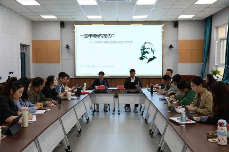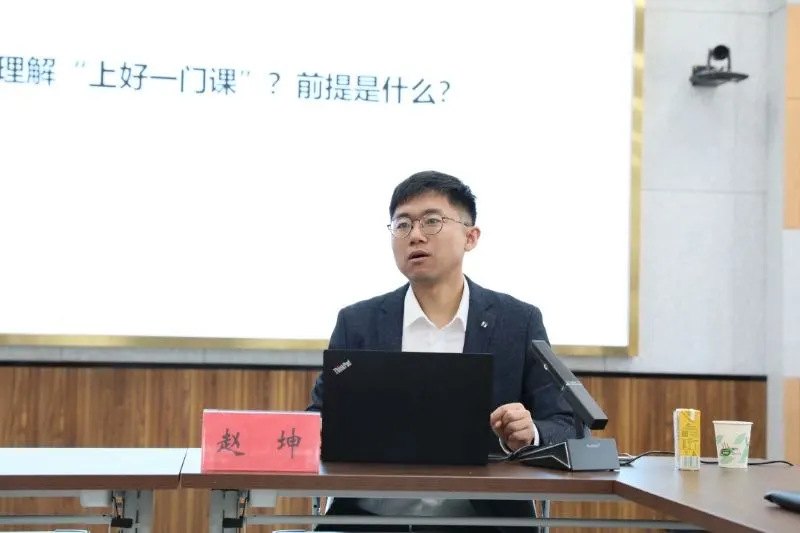 作为浙江大学青教赛的“明星选手”,赵坤以“一堂课如何有魅力——青年教师教学竞赛备赛理念与方法”为主题,结合自身从“青椒”到教学骨干的成长历程,系统讲述了青教赛的备赛要点与价值内核。他指出,教学竞赛不仅是展示教学能力的舞台,更是青年教师锤炼教学基本功、深化教学理念的契机。他以课程设计为例,强调“以学生为中心”的教学逻辑:“竞赛课程需要兼具学术深度与课堂感染力,既要展现知识脉络的严谨性,又要通过问题链、案例库和互动设计点燃学生的思维火花。”