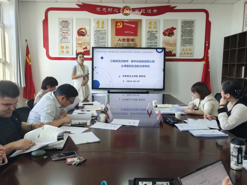 马克思主义基本原理教研室曹圆圆、习近平新时代中国特色社会主义思想概论教研室刘彩霞、毛泽东思想和中国特色社会主义理论体系概论教研室陈曦、形势与政策教研室郭梦钰、中华民族共同体概论教研室艾尤热·艾热提、中国近现代史纲要教研室李理想和思想道德与法治教研室刘梦梦7位教师分别围绕课程定位与学情分析、教学痛点、教学模式以及创新成效等方面,结合自身教学实践进行了汇报展示。4位评委针对选手的教学创新成果报告以及选手现场表现进行了细致且有针对性的点评,既有对选手在教学创新亮点与突破上的肯定,也针对教学设计、教学痛点的挖掘等存在的不足提出意见建议。