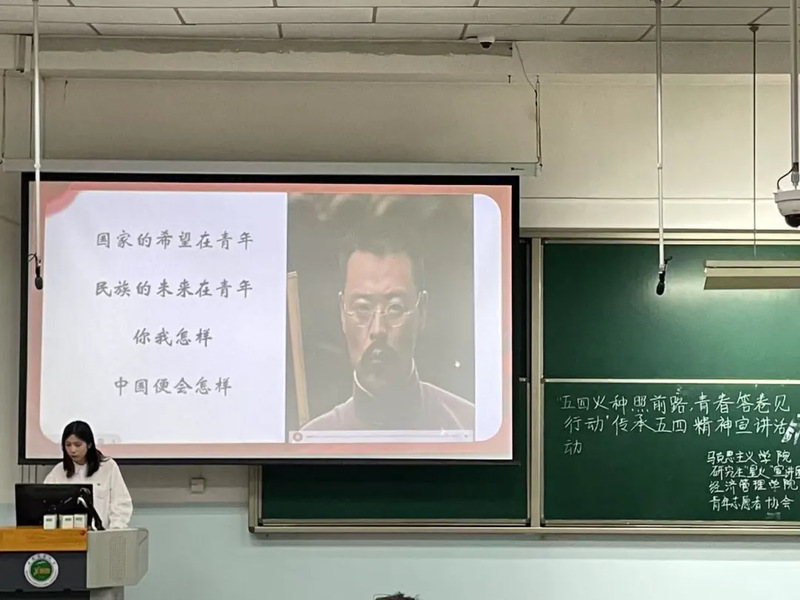 为弘扬五四精神,激励广大青年以实际行动践行青春担当,4月29日晚,马克思主义学院研究生“星火”宣讲团联合经济管理学院青年志愿者协会在二号楼418教室开展“五四火种照前路,青春答卷见行动”传承五四精神宣讲活动。