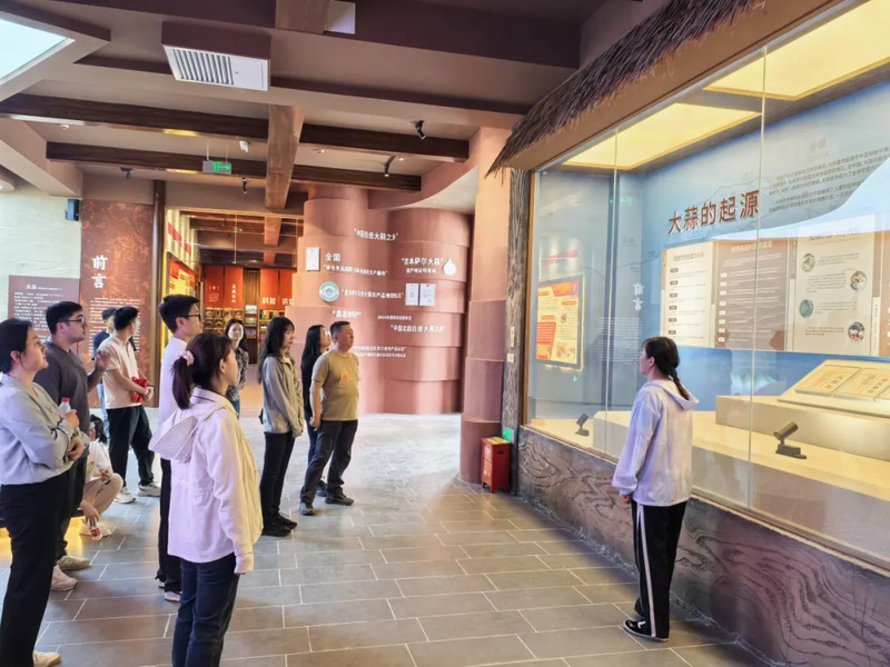 支部党员深入新地乡,探访大蒜文化科普馆、小分子画家村及三台酒厂。在大蒜文化科普馆,通过图文展板与实物展示,了解当地大蒜产业从种植技术到品牌建设的全链条发展,深刻体会特色农业对乡村振兴的支撑作用;小分子画家村美术馆内,乡村美术馆与田园风光相映成趣,党员们实地感受“文化赋能乡村”的创新范式,一幅幅描绘乡村景观的艺术作品,体现了新时代各族群众携手共绘美好生活的生动写照;三台酒厂的生产车间里,传统酿造工艺与现代化生产线的碰撞,展现了老字号企业在传承中创新的发展智慧。