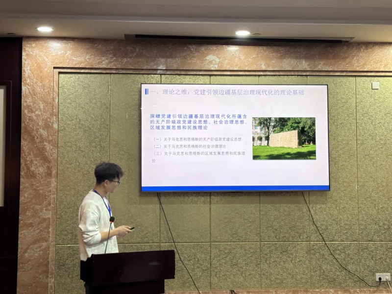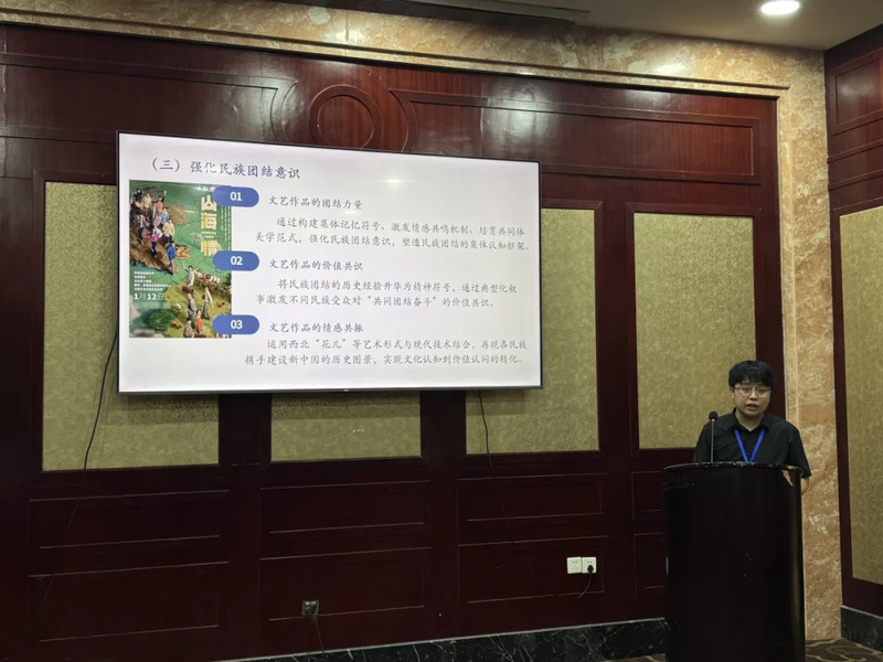 在分论坛环节中,张小帅以《新时代文艺作品赋能中华民族共同体意识的价值实现路径研究》为题进行汇报;韩怀忠围绕《理论·历史·实践:党建引领边疆基层治理现代化的三维向度》分享自己的观点;杜宸作了题为《学科交叉与协同育人:民族地区高校铸牢中华民族共同体意识教育的路径重构》的交流;张芝玲阐述了《和合共生:铸牢中华民族共同体意识的价值底蕴》;陈洋以“共有传统节日仪式”为切入点汇报了《新时代以共有传统节日仪式铸牢中华民族共同体意识探析》;刘佳以《基于“古今中西之争”的破解探析习近平文化思想的原创性贡献》做了发言。