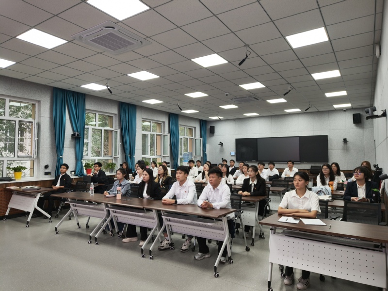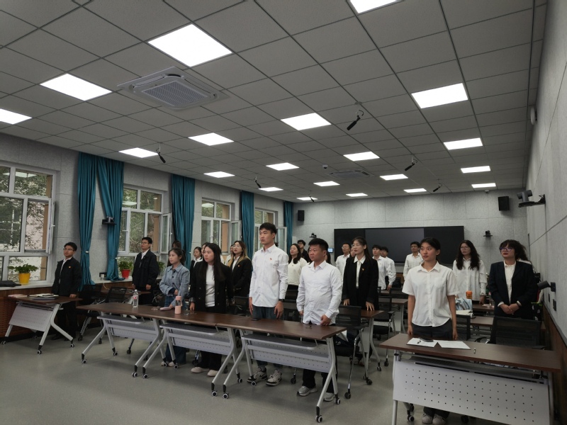 随着激昂的国歌声响起,屏幕中鲜艳的五星红旗冉冉升起,全体师生自觉全体起立,面向屏幕行注目礼,现场庄重而肃穆。升旗结束后,全体师生专注凝视屏幕,认真聆听习近平总书记发表的重要讲话。习近平总书记的讲话回顾了中国人民抗日战争的艰辛历程与伟大胜利,阐释了历史对当下与未来的深远启迪,强调要传承和弘扬伟大抗战精神,踔厉奋发、勇毅前行,为实现中华民族伟大复兴凝聚磅礴力量。教师与学生们时而凝神记录,时而沉思,深刻感悟着讲话中蕴含的历史厚重感与时代责任感。