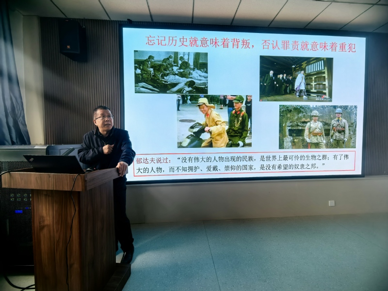 李咏宾教授作了《侵略与抗争——日本侵华动因与全民族抗战中的国共两党》专题讲座。李咏宾运用丰富的史料,系统梳理了日本侵华的深层动因,客观分析了国共两党在抗战中的不同表现,深刻阐释了中国共产党作为全民族抗战中流砥柱的历史逻辑。