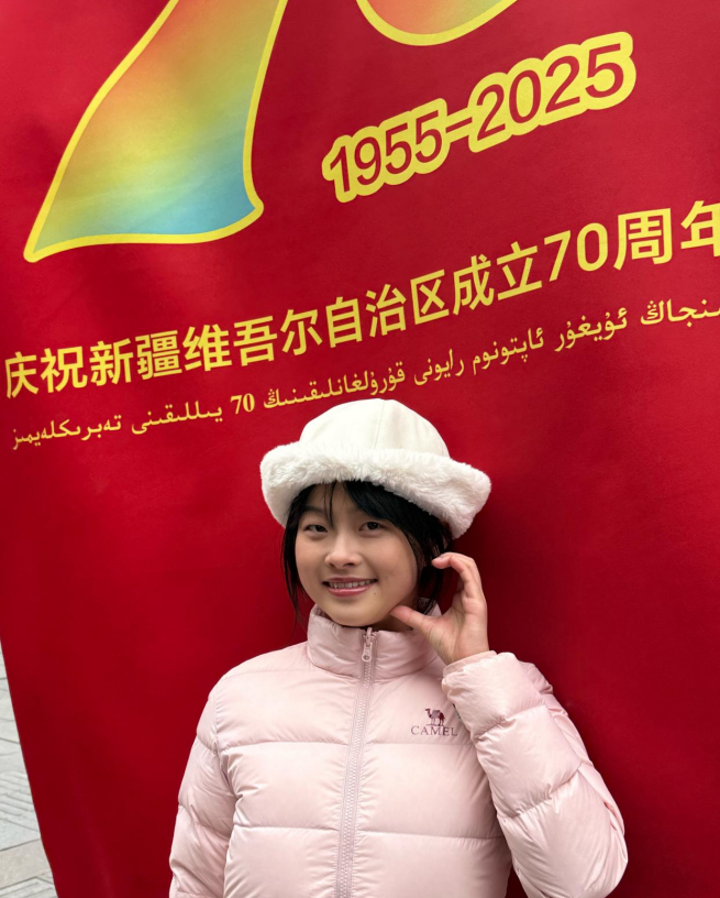 2024级硕士研究生毛仁杰:七十年风雨征程,大美新疆山河如画。在这里,雪山映照着团结之光,绿洲传唱着共生之歌。愿我们像石榴籽紧抱,共同铸牢中华民族共同体意识,让青春足迹为这片热土写下更美的诗行。衷心祝福亲爱的祖国:山河永固,国泰民安,在新时代的征程上续写辉煌篇章!愿祖国的明天更加繁荣昌盛,每一寸土地都充满生机,每一个儿女都共享荣光!