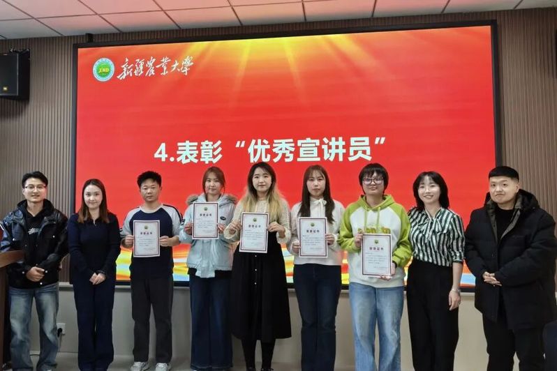 辅导员伊再提古丽在总结讲话中充分肯定了宣讲团过去一年取得的突出成绩,并对即将离任的骨干成员表示祝贺与祝福,对新任骨干和新鲜力量寄予厚望。