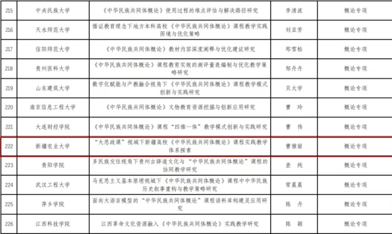 近日,国家民委发布《2025年度国家民委高等教育教学改革研究项目立项情况公示》,马克思主义学院教师曹雅丽申报的《“大思政课”视域下新疆高校<中华民族共同体概论>课程实践教学体系探索》项目获批概论专项,实现了学校在该项目中“零”的突破。