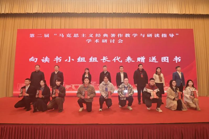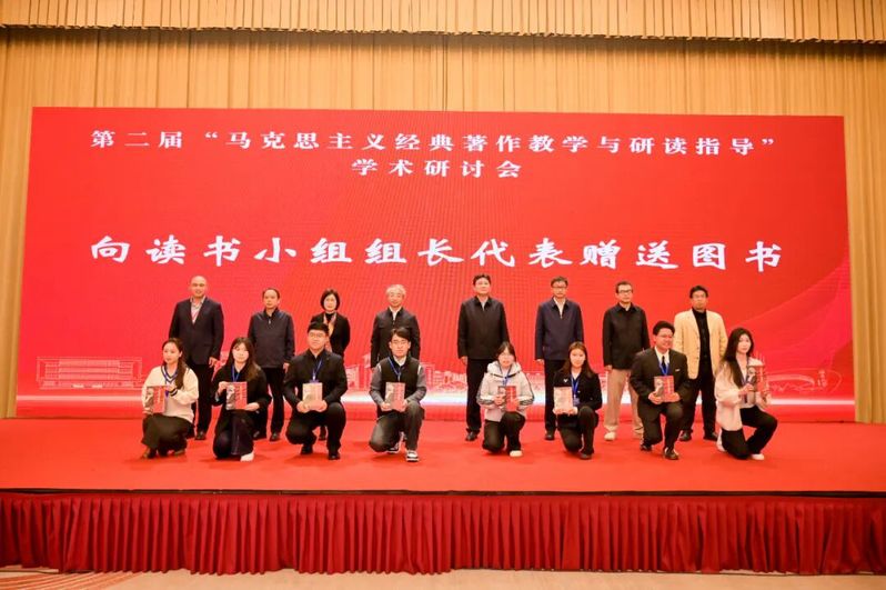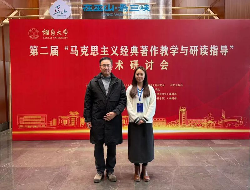 11月8日,第二届“马克思主义经典著作教学与研读指导”学术研讨会在烟台大学召开。马克思主义学院教师刘朝帅博士带领获得2025年马研会资助的读书小组组长王婧怡、王珂一两位同学参会。