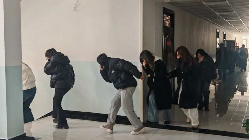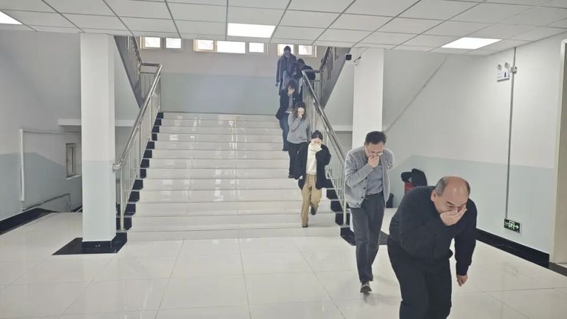 学院还组织开展了模拟火灾应急演练。随着火情信号发出,全体教职工迅速行动,严格遵循“弯腰低姿、捂紧口鼻”的逃生规范。师生们按照应急预案,沿安全通道快速有序撤离至指定安全区域,整个过程衔接紧密、反应高效。