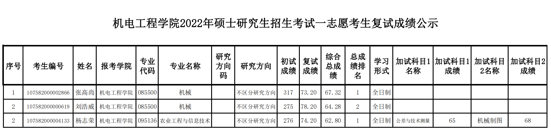 如有异议可向机电工程学院研究生招生办公室咨询。
