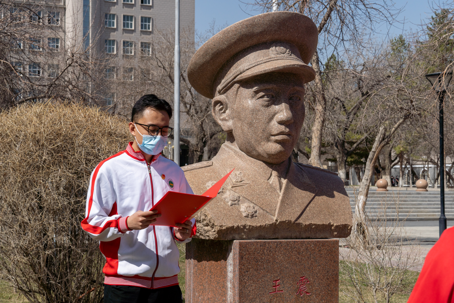 扫墓仪式开始后,全体人员在国旗广场面对王震将军,涂治校长的雕塑肃立,由学生代表向王震将军、涂治校长雕塑献花,向为学校无私奉献的老一辈农大人致以最崇高的敬意。