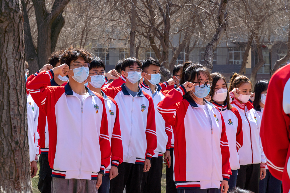 全体肃立,默哀一分钟。学生代表杨博竣同学带领全体同学重温入团誓词,不忘初心,寄托着对先辈们的敬仰。此外还有更多的同学,在线上进行祭拜活动通过宣传前辈的英勇事迹,线上的祭拜追思,展现了当代大学生要求先进,积极主动学习并传承先辈的精神。