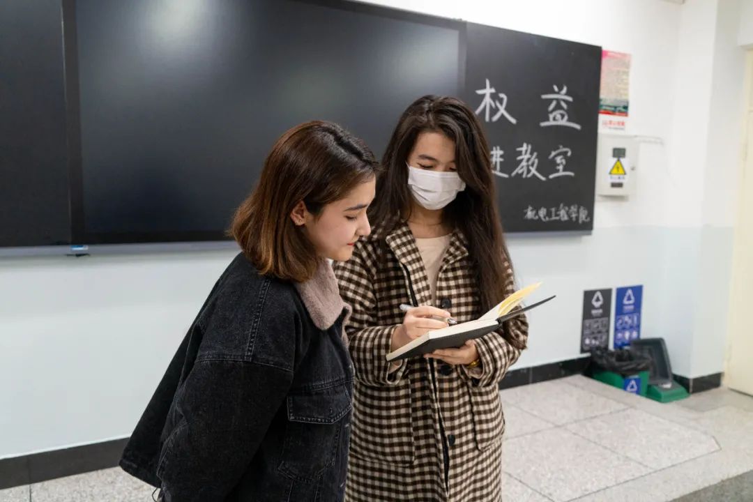 权益部总负责人夏荷娜子·玉素甫江,负责人郭世豪分别进行调研和解说互动工作,倾听并记录同学们反映的问题,寻求解决问题的办法。
