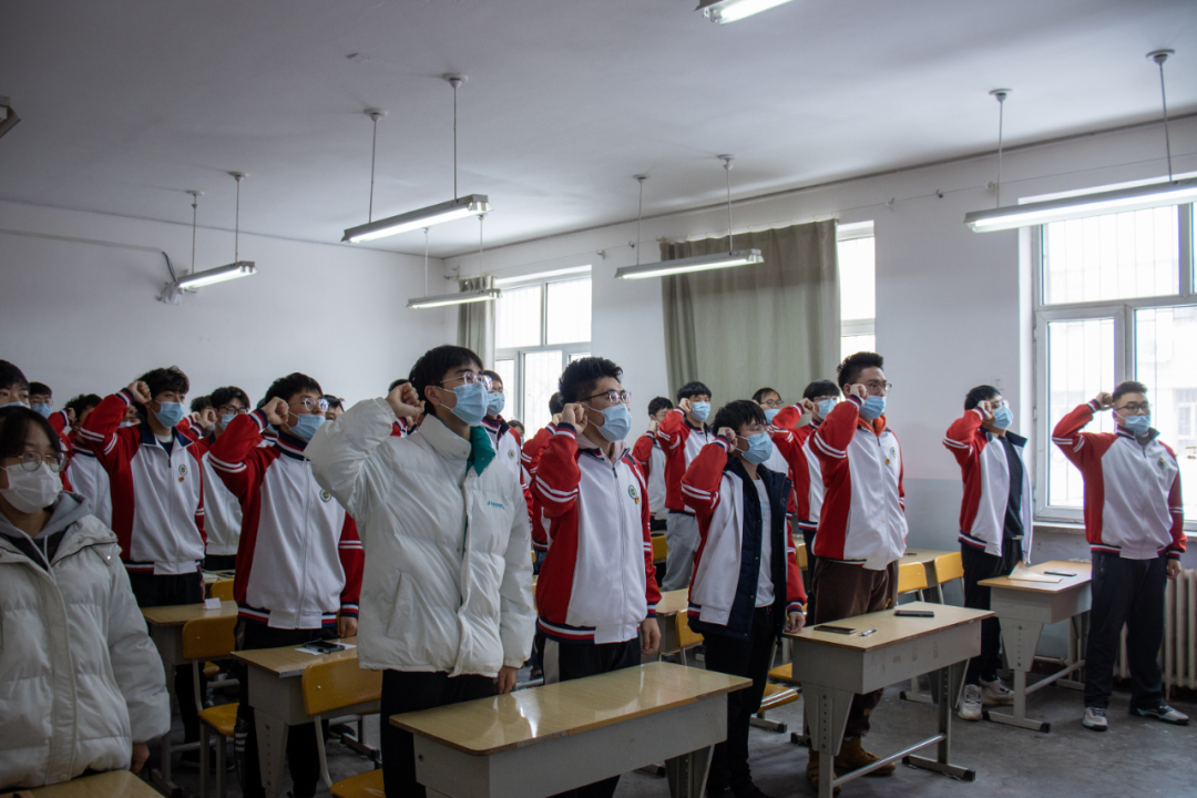 最后团支书带领同学们,一起举起右拳重温入团誓词,重温入团时的初心。