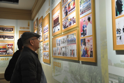 参观中,大家通过观看一幅幅生动的图片、一件件珍贵的实物,详细了解了学校七十余载的发展轨迹和光辉历史。“从建校初期的艰苦创业,到如今的繁荣昌盛,学校经历了无数风雨洗礼,秉持严谨治学的态度,为国家和社会培养了无数优秀人才,铸就了今天的辉煌”,通过讲解员的生动叙述,现场师生深刻感受到了学校的深厚底蕴。当看到机电学院的校友及老师出现在展览的照片中时,大家深切体会了自己书写农大历史和创造农大辉煌的参与感、荣誉感,更是增添了每个人干事创业的底气和力量。