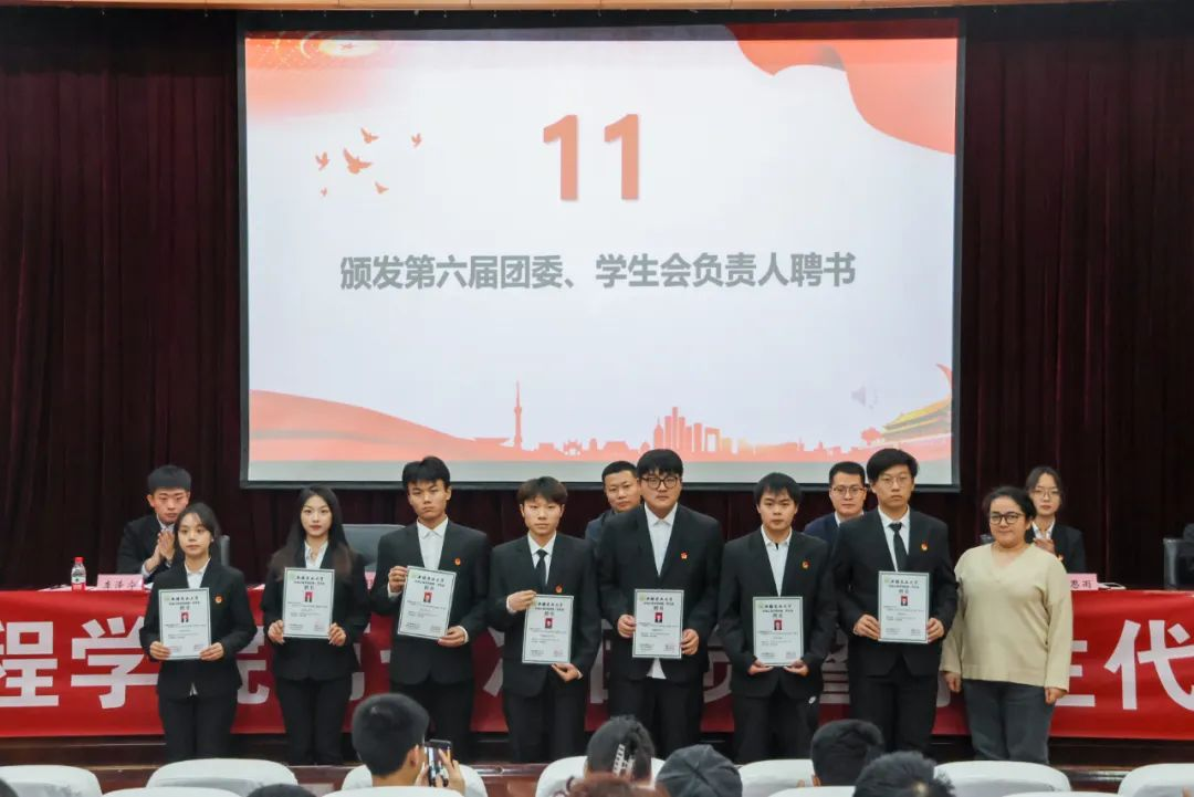 大会第十项,由机电工程学院党委副书记、纪委书记夏新彬老师为第六届团委、学生会主席团颁发聘书。
