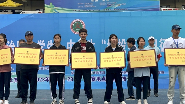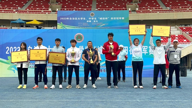 5月24-28日,2023年自治区大学生、中学生“城投杯”田径冠军赛在奎屯市举办。星空彩票体彩版派出35名运动员参加了28项比赛,获4金、5银、6铜,5个第四名、2个第五名、4个第六名、3个第七名、2个第八名,以189.5的团体分数荣获团体总分第二名,这个分数比去年高出了19.5分。值得一提的是,在大学甲组4*400米接力项目上,我校运动员不畏强敌,以顽强拼搏、奋勇争先的精神拿下了这个项目的冠军。