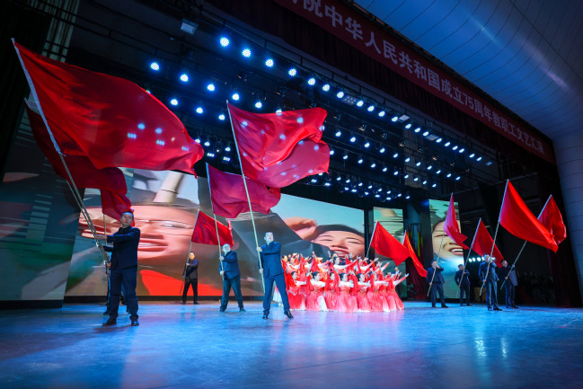 “歌唱我们亲爱的祖国,从今走向繁荣富强……”文艺汇演在全体合唱《歌唱祖国》的嘹亮歌声中落下帷幕。