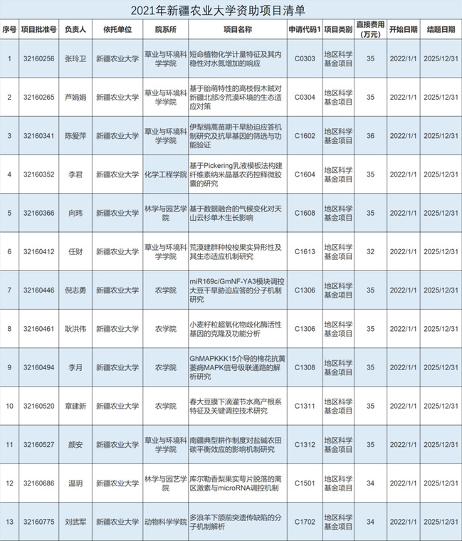 近日,2021年度国家自然科学基金资助情况揭晓,我校25项申请获得832万元资助,其中地区科学基金项目23项,青年科学基金项目2项。
