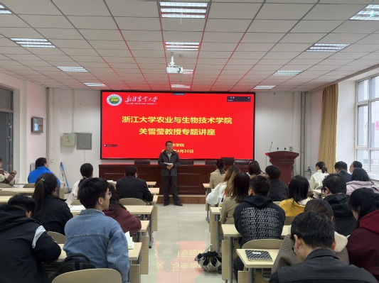 2024年4月26日,浙江大学农业与生物技术学院关雪莹教授应邀在农学院多功能厅A122作“棉花种子发育与活力的遗传解析”学术报告。学院植物遗传育种系全体教师及相关专业研究生聆听报告,报告由学院副院长耿洪伟教授主持。