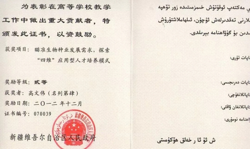 学院始终坚持“以人为本,德育为先,能力为重,全面发展”的教育宗旨,不断提高人才培养质量。建成棉花教育部工程研究中心1个、自治区资源共享平台1个、自治区重点实验室1个、自治区协同创新中心1个、自治区教育厅重点实验室1个、自治区级实验教学示范中心1个、校级重点实验室5个、自治区级普通高校教学团队2个。学院累计荣获教学成果奖国家级二等奖1项,自治区级二等奖1项,校级一等奖1项、校级二等奖1项。获全国高校微课大赛一等奖1项,三等奖1项。