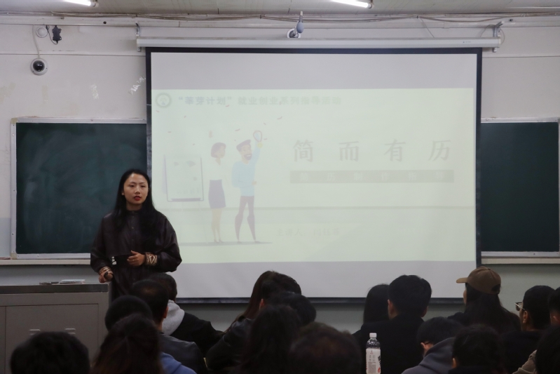 本次培训以如何制作一份成功的简历展开。首先闫老师简明扼要地为大四年级学生分析了如今形势下就业的“危”与“机”,强调了简历的重要性。随即对简历制作过程中常见问题、步骤及技巧以及美化等方面作了详细讲解。以“鸭子理论”切入,对简历核心内容的写作方法进行了举例讲解,要求同学们按照岗位需求调整简历内容,并且提供了多种提高同学们写作水平的方法,详略得当。