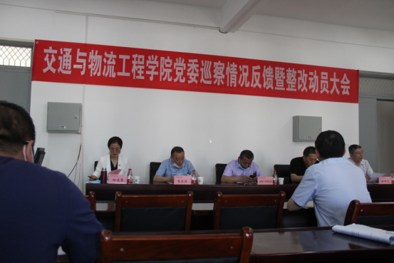 会上,由校党委第三巡察组组长金晓龙同志宣读了反馈意见,指出了交通与物流工程学院党委在党的领导、党的建设、全面从严治党等方面存在的系列问题。校党委巡察工作领导小组办公室主任李全棋同志向交通与物流工程学院党委提出整改要求:要充分增强党的领导核心作用,抓好班子队伍建设;强化党支部的战斗堡垒作用;落实全面从严治党主体责任,持续推进党风廉政建设;加强意识形态领域反分裂斗争纪律,严肃六项纪律和八项规定,坚决整治工作纪律和工作作风等。要求交通与物流工程学院党委制定整改方案,列出问题清单,建立工作台账,明确整改时限,及时公开整改情况,接受全校党员干部和师生监督。