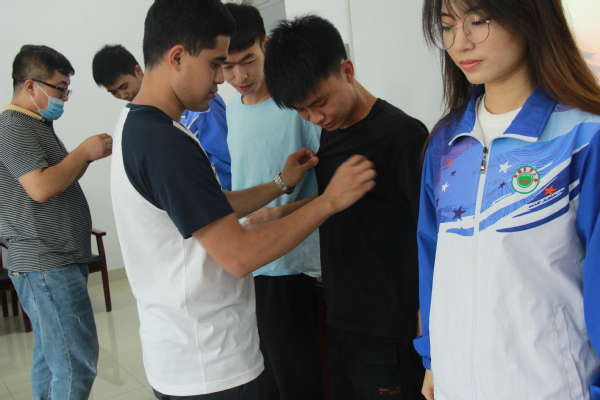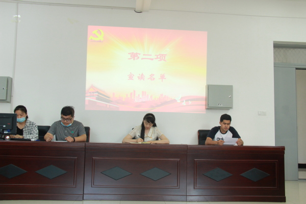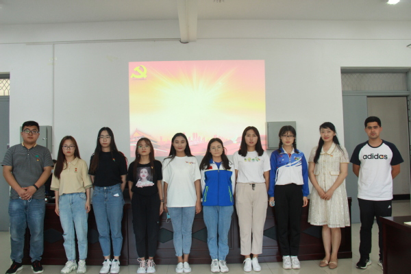 艾尔夏提·吾买尔同志宣读了学院党委审批通过的新发展党员名单,与会老师为新发展党员逐一佩戴党徽。学生第一党支部书记鲁德渊带领十三名新发展党员面向党旗,庄严宣誓。