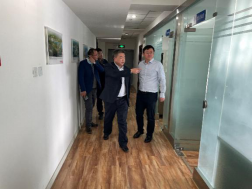 谢海巍一行在中交公规院新疆分公司王建军总经理的陪同下,参观了办公场所,详细了解了公司各方面情况。在中交公规院新疆分公司展览馆,公司光辉的历程、骄人的业绩让人感叹。