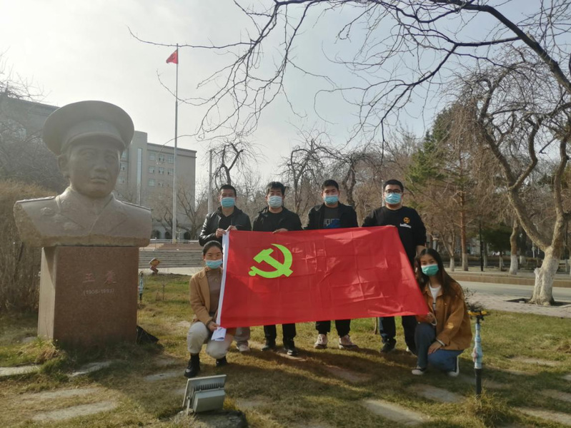 活动中,大家来到习近平总书记故事园,逐字逐句重温入党誓词,党支部书记袁浩认真讲解了“王杰班”军人血性的故事,引导党员教师深切缅怀革命先烈的丰功伟绩,接受革命传统教育,充分表达对先烈的崇高敬意。随后,大家在王震将军塑像前庄严肃立,心怀敬意、缅怀先辈、寄托哀思,传承红色血脉,追忆老一代农大人“屯垦戍边办大学、稳疆兴疆育人才”的奋斗历程。