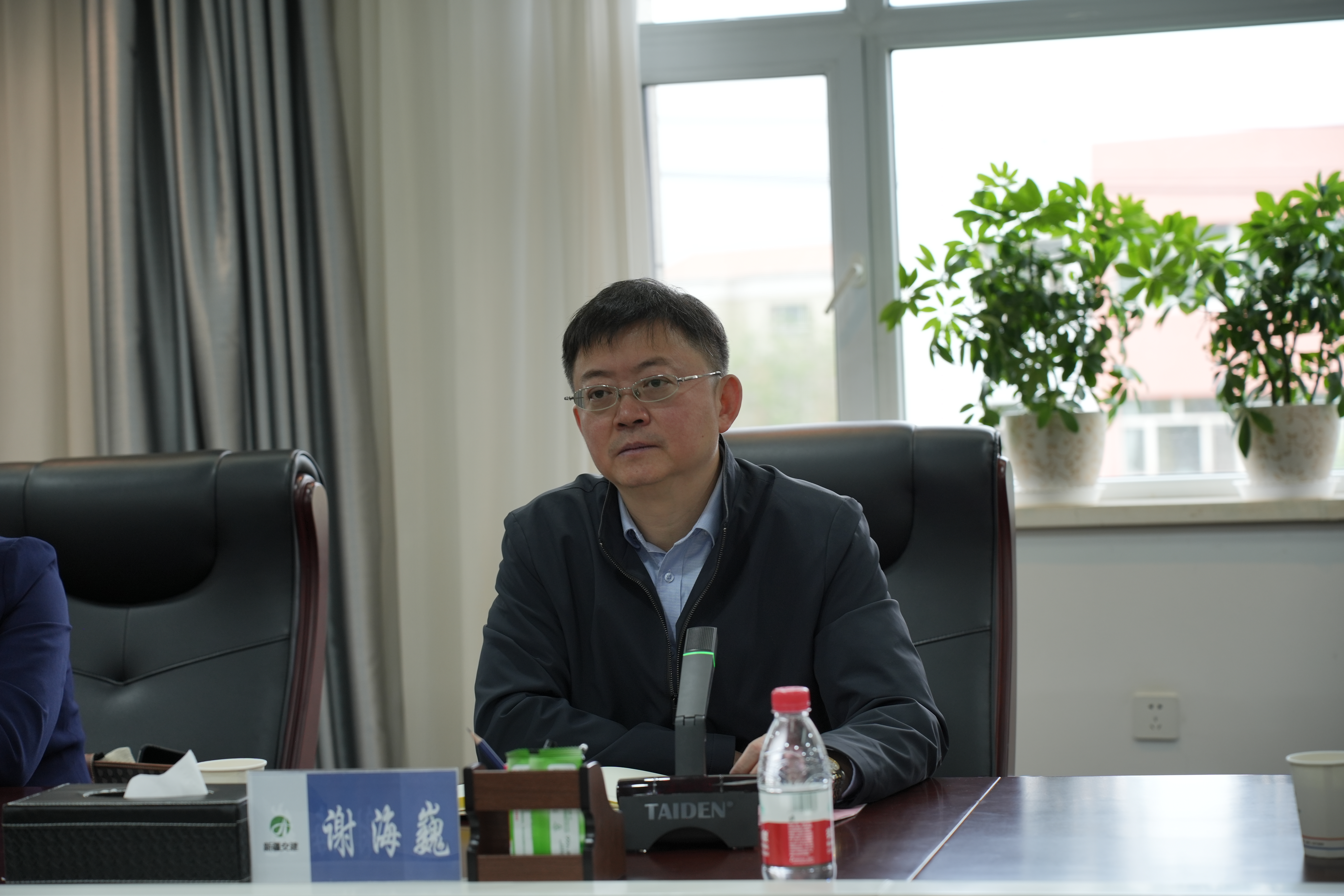 会前谢海巍一行在新疆交通建设集团科技管理部马莲霞部长、人力资源部部长张利萍陪同下参观新疆交建集团企业文化展厅,并听取了集团发展历程及业绩介绍。随后,与会双方开展深入交流。