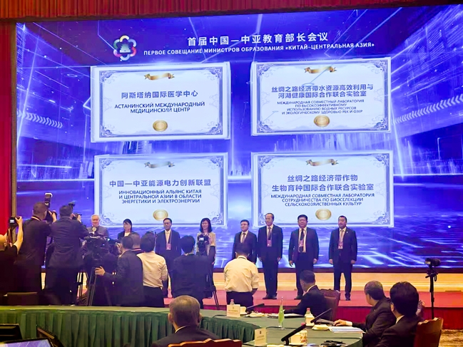 Urumqi, May 12, 2032 — Two international joint laboratories were officially launched at Xinjiang Agricultural University (XJAU) during the First China-Central Asia Education Ministers’ Conference held in Urumqi. The University partnered with Kazakhstan’s Saken. Seifullin Kazakh Agrotechnical Research University and China’s Hohai University to establish the Silk Road Economic Belt International Joint Laboratory for Agricultural Water Conservation and River-Lake Health, while collaborating solely with the Kazakh institution to unveil the Silk Road Economic Belt International Joint Laboratory for Crop Bio-Breeding. XJAU Party Secretary Prof. Xie Shuqing attended the inauguration ceremony.