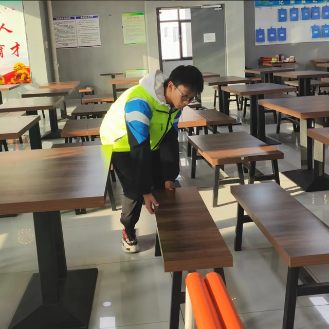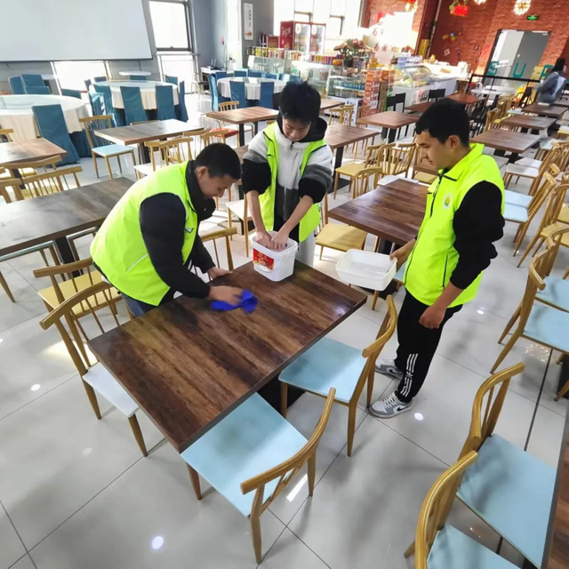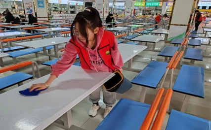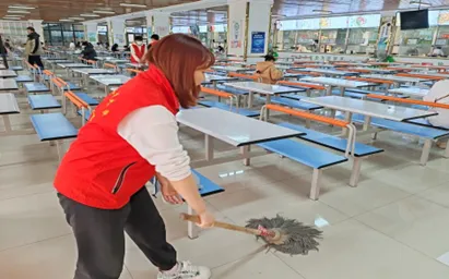 食品科学与工程2301班团支部组织14名志愿者帮助食堂工作人员,缓解食堂在休息日工作压力。
