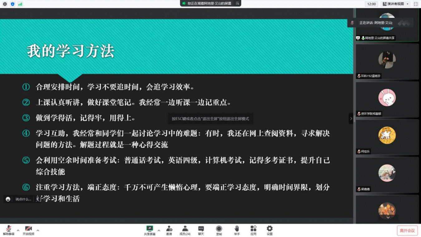 宝剑锋从磨砺出,梅花香自苦寒来。阿地里·艾山同学结合自身实际,为大家分享了10个宝贵的学习方法,掌握高质量的学习方法能够让我们在学习过程中事半功倍,取得优异成绩。