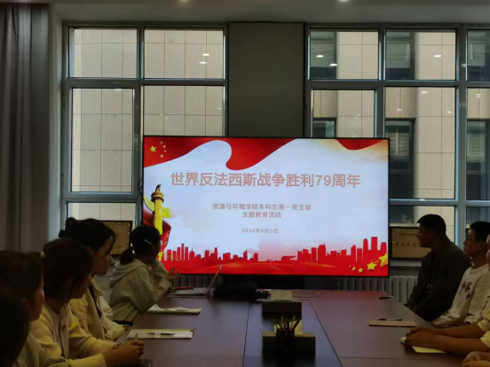 为纪念反法西斯战争胜利79周年的纪念日,让大家深入领会全人类通过团结与抗争迎来和平的曙光的这一伟大见证,从而进一步弘扬抗战精神以及其中的深刻内涵,资源与环境学院本科生第一党支部于2024年9月3日开展了“世界反法西斯战争胜利79周年”主题教育活动。本次活动由刘弦月主持,全体党员同志共同参与其中。
