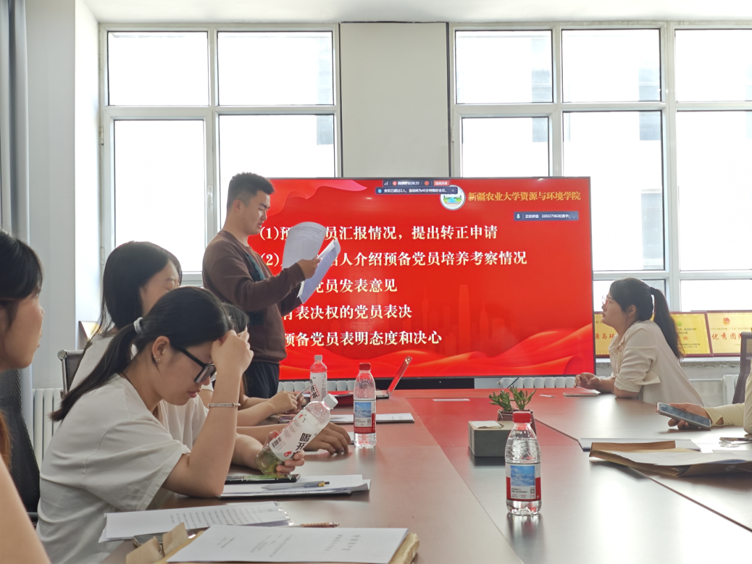 为加强党员队伍建设、提升党员素质,深入贯彻习近平新时代中国特色社会主义思想,2025年6月14日,星空彩票体彩版资源与环境学院本科生第一党支部于学院会议室召开预备党员转正大会。